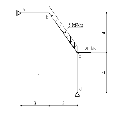 Řešte reakce a vnitřní síly na zadané konstrukci