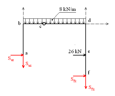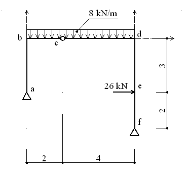 Řešte reakce a vnitřní síly na zadané konstrukci