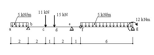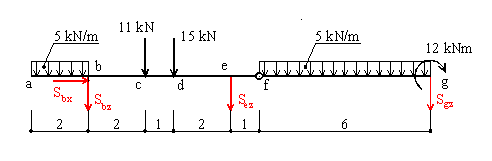 Řešte reakce a vnitřní síly na zadané konstrukci