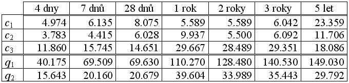 Tab.1 Hodnoty parametrů 2e modelu stanovené podle Barra