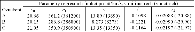 Vzhledem k nelineární závislosti funkcí na jejích parametrech byly tyto parametry hledány pomocí genetických algoritmů minimalizací čtverců odchylek. Samotná nelineární regrese ukázala, že výstižnější je funkce yhyper, viz obr. 2 a 3. Její jednoduchost oproti funkci ysqrt vyváží potřebu tří parametrů. Funkce ysqrt byla zpočátku navržena se čtyřmi parametry, přičemž dva z nich se ukázaly konstantní pro dané geometrie s hodnotami 0.001 a 1000, viz vztah (1). Uveďme dále, že funkce ysqrt je navržena tak, aby neměla v bodě bn = 0 konečnou derivaci. Největší odlišnost obou funkcí lze nalézt pro zářezy se šířkou bn<0.5 mm. Hodnoty parametrů funkcí uvádí tab. 3.